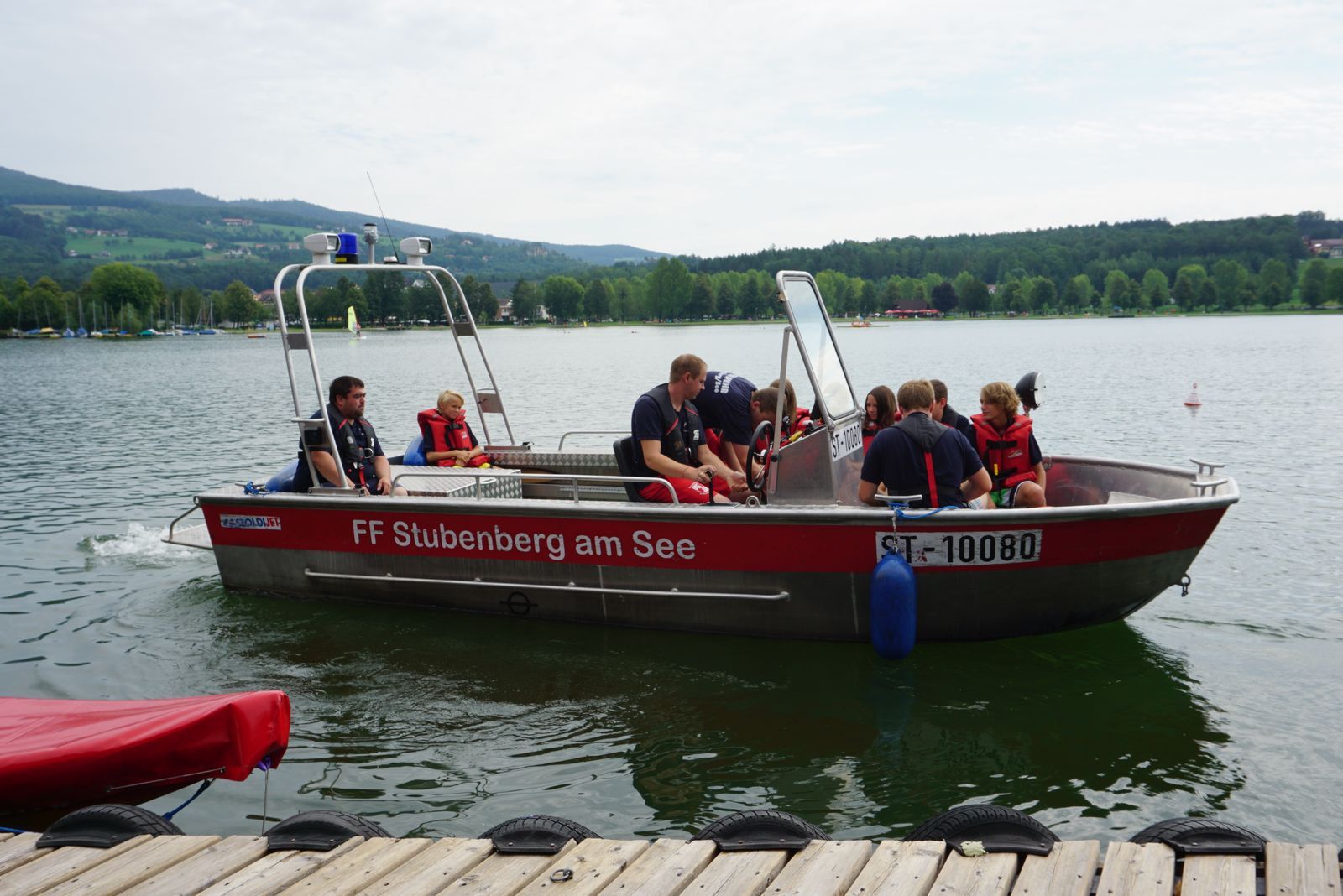 Die erste Station war der Stubenbergsee, bei dem die Jugendlichen am Vormittag einen Einblick in die Wasserrettung der Stubenberger Feuerwehr bekamen. Natürlich wurde auch eine kleine Runde am See mit dem Boot der Feuerwehr gedreht. Danach folgte eine wohlverdiente Abkühlung im See.